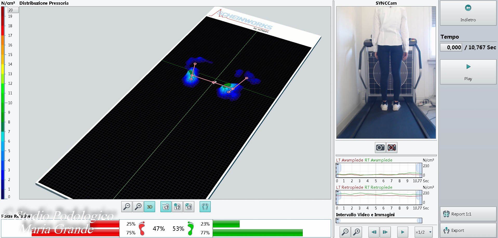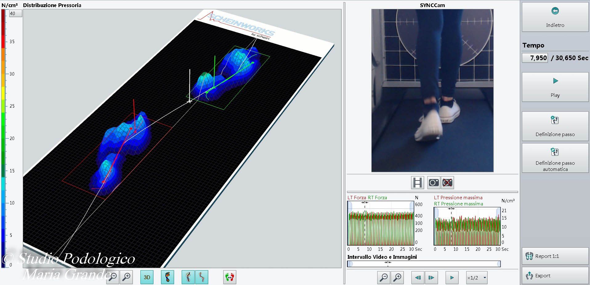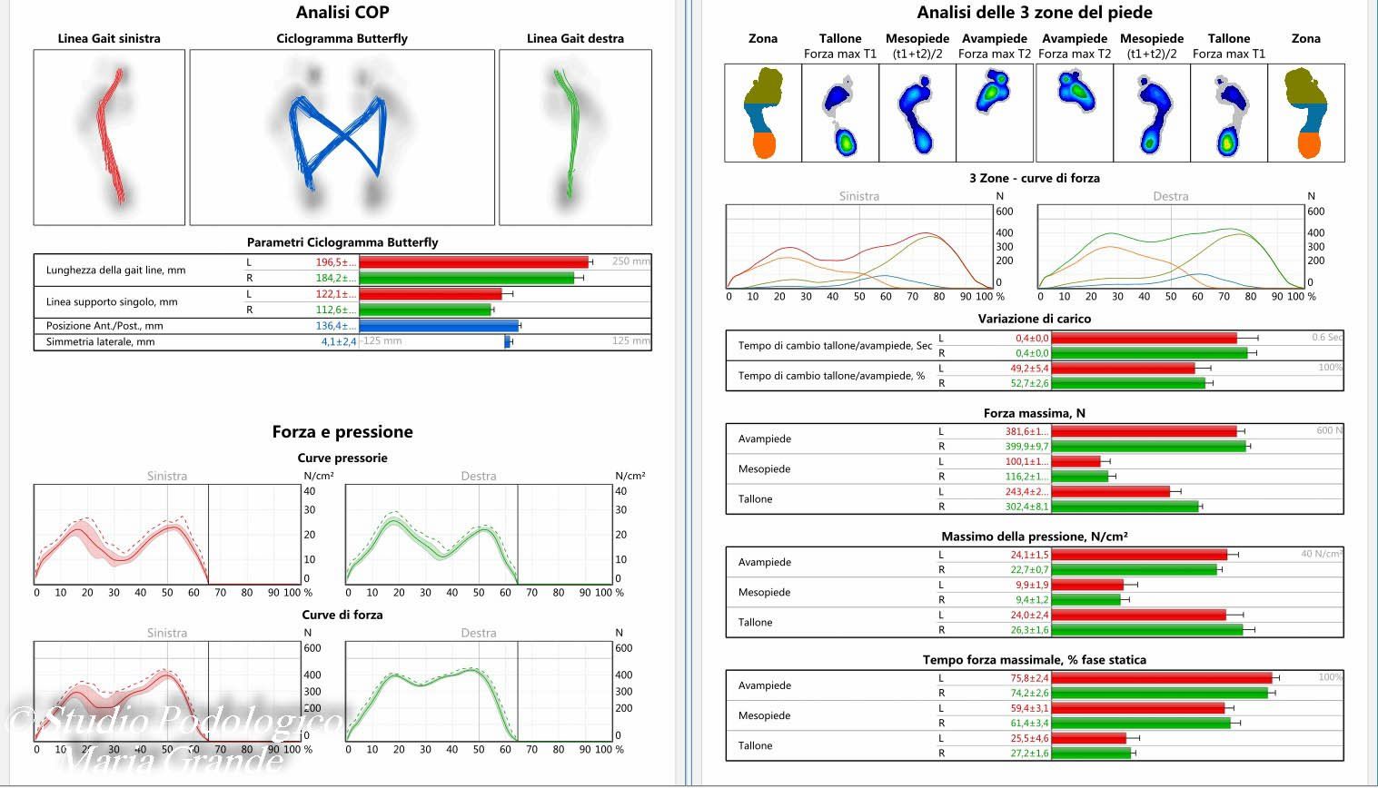 Report dell'analisi dinamica (marcia) con la calzatura e ortesi plantari su misura