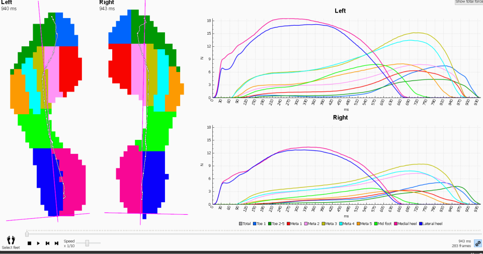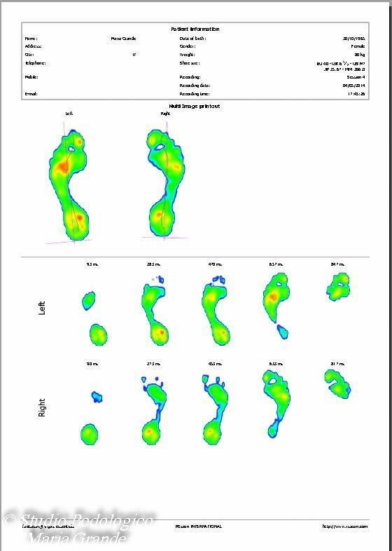 I risultati disponibili subito dopo l'esame consentono la visualizzazione delle pressioni plantari durante tutte le fasi del passo, la postura, la distribuzione del carico, le diverse angolazioni del ginocchio, la rotazione interna