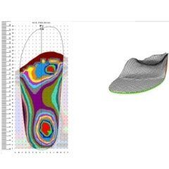 5. Per mezzo del computer e dei sistemi CAD è possibile osservare come l'ortesi plantare modifica l'appoggio del piede (impronta plantare corretta).