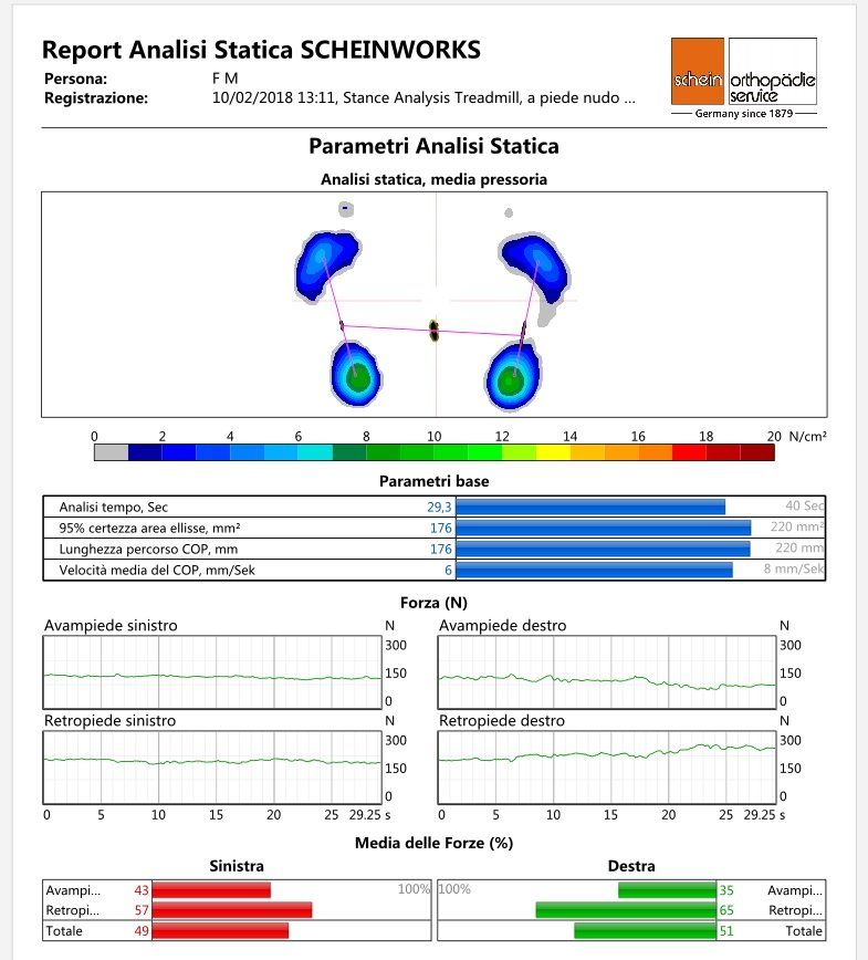 statico e dinamico con utilizzo della pedana baropodometrica Rs Scan nonché analisi stabilometrica e biomeccanica del piede