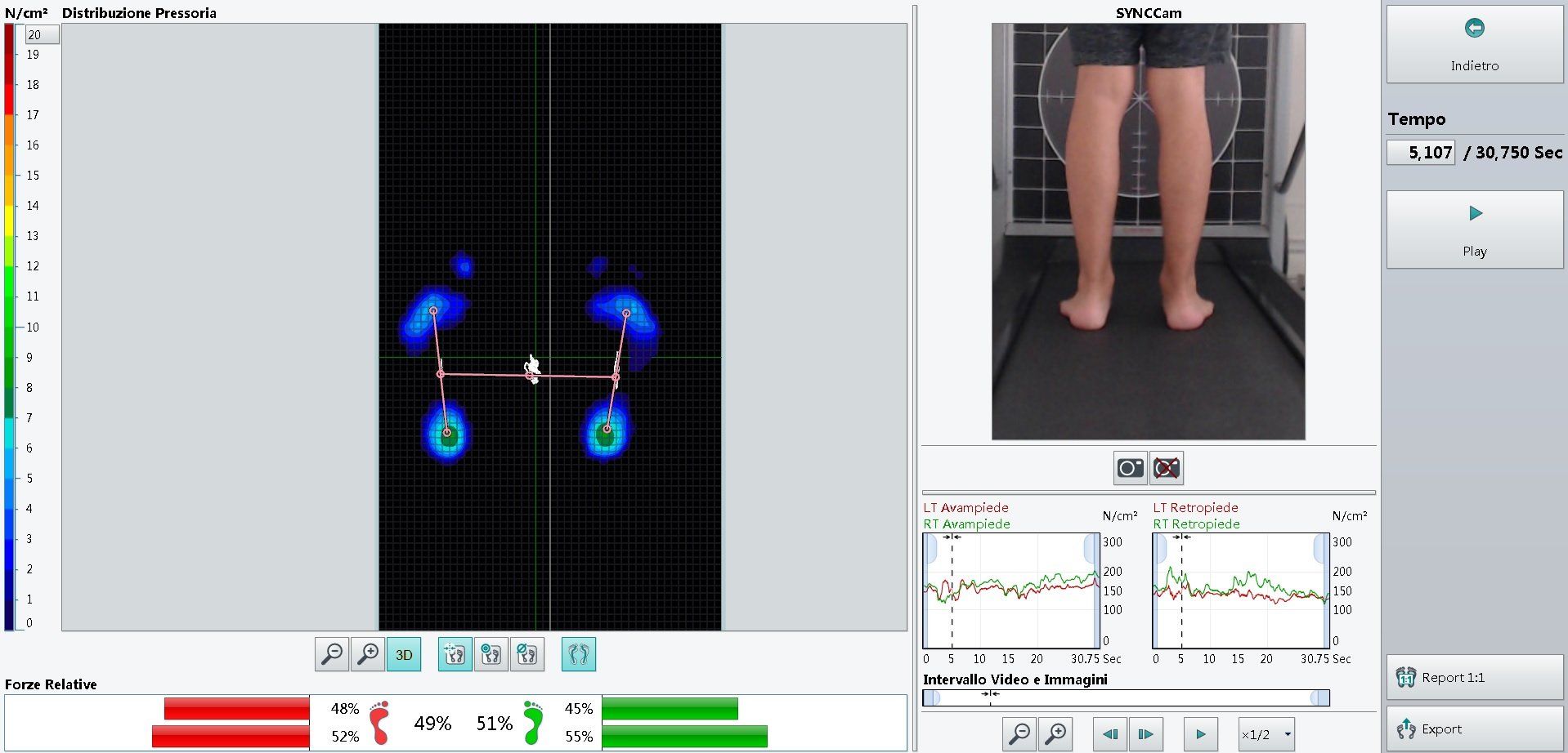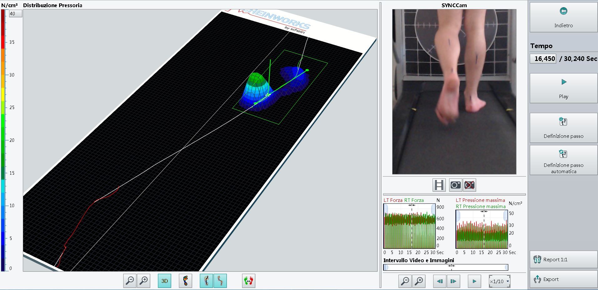 e bacino, del paziente, ripreso su un tapis roulant, mediante l'acquisizione con fotografia di 50,400 punti di misura. La frequenza di ripresa arriva fino a 50 immagini al secondo.