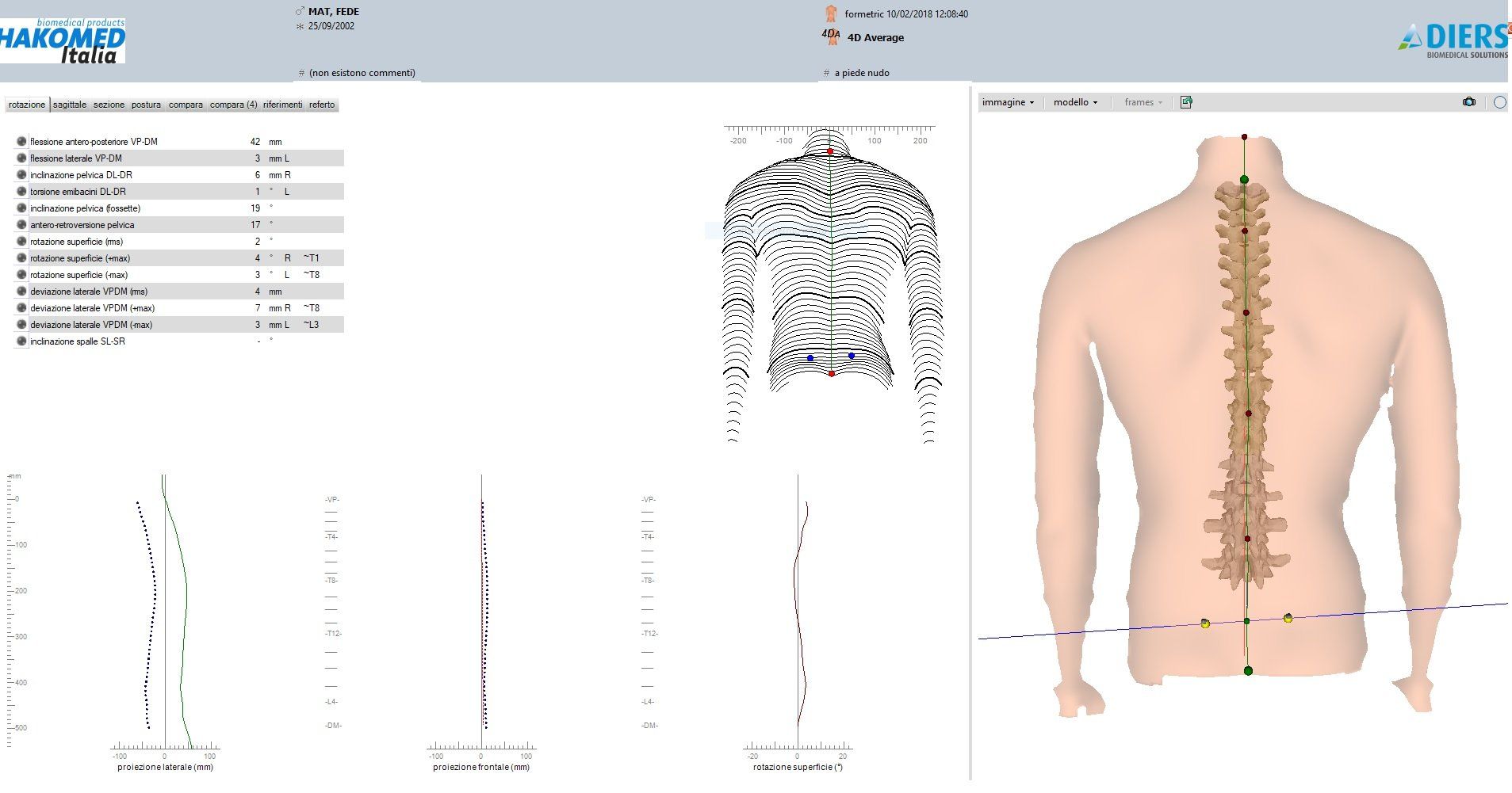 e del bacino, effettuate con il sistema formetric 4D motion, presso il nostro studio, vengono integrate con misurazioni