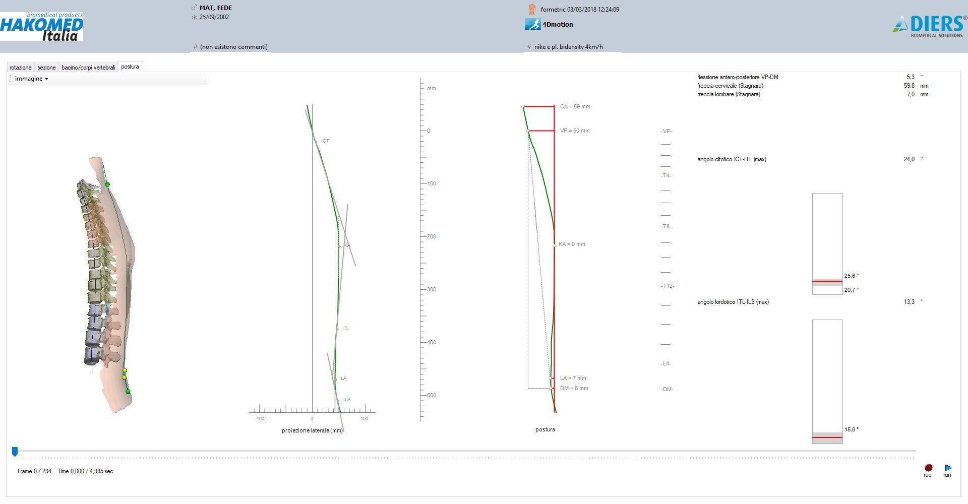 ESAME DINAMICO CON SPINOMETRIA FORMETRIC4D MOTION